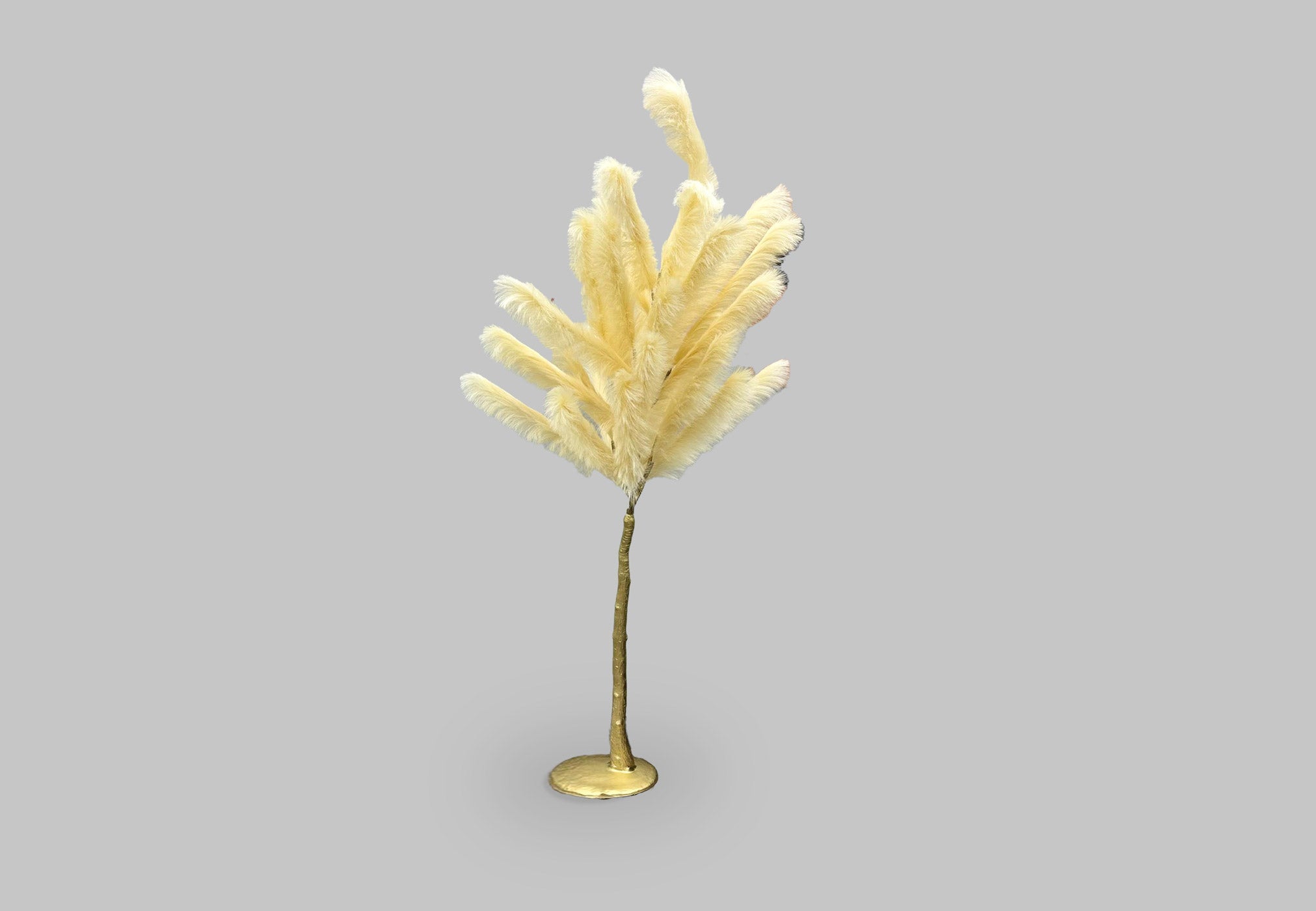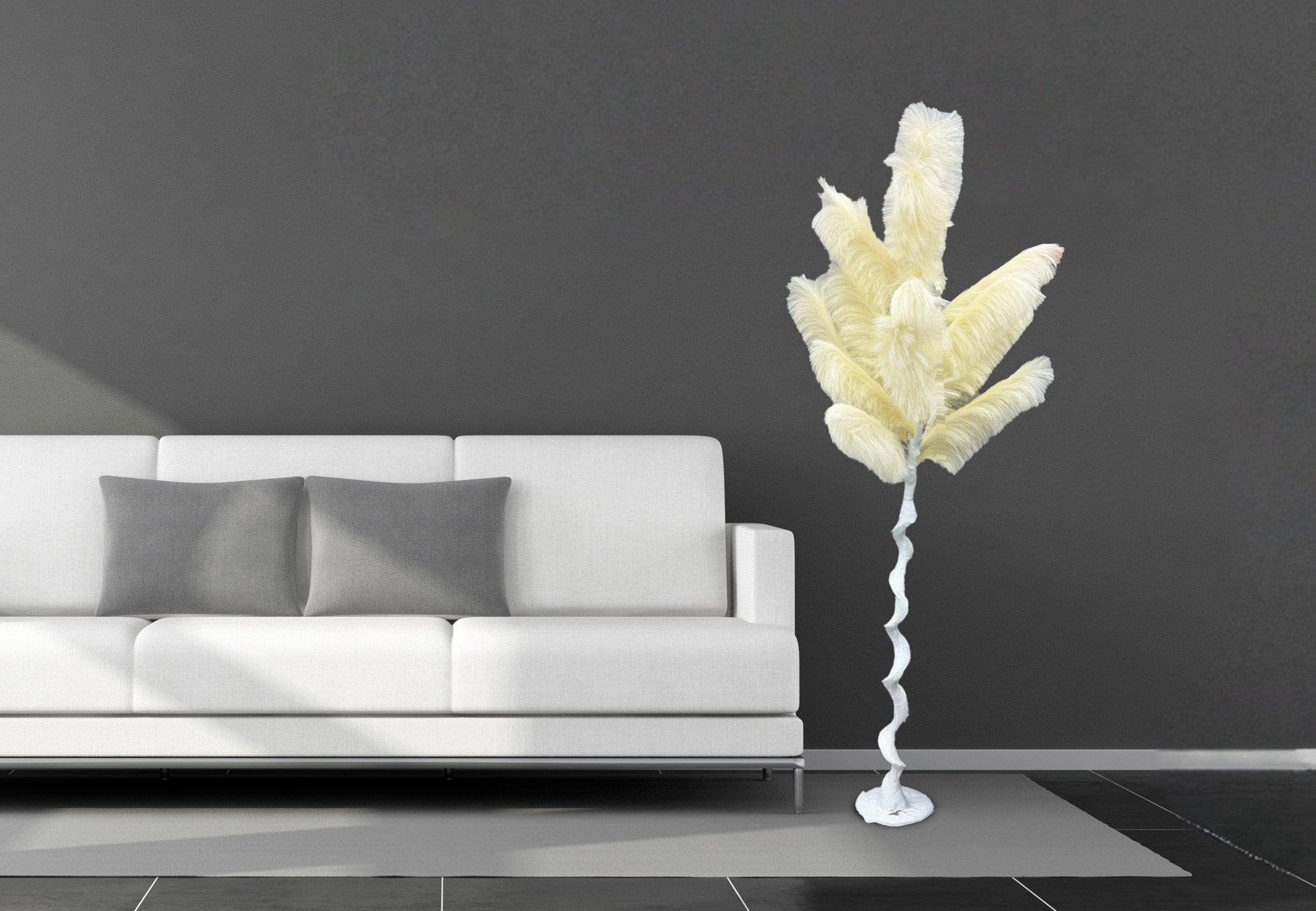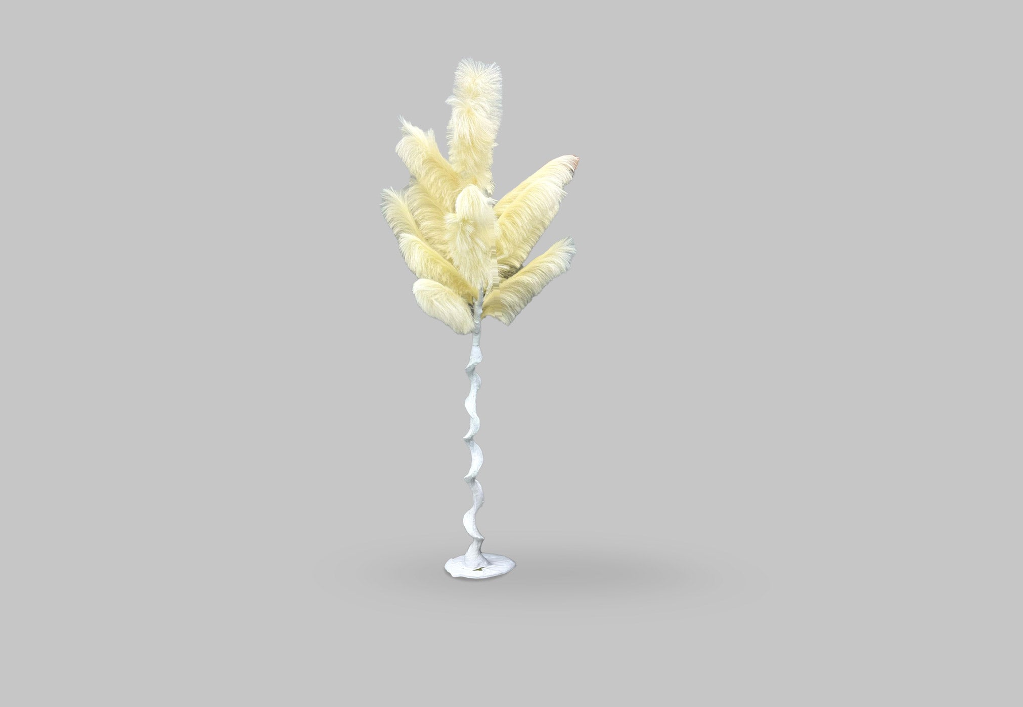 A unique decorative feather tree with a sculptural spiral base, adding a touch of organic movement and elegance to any space.