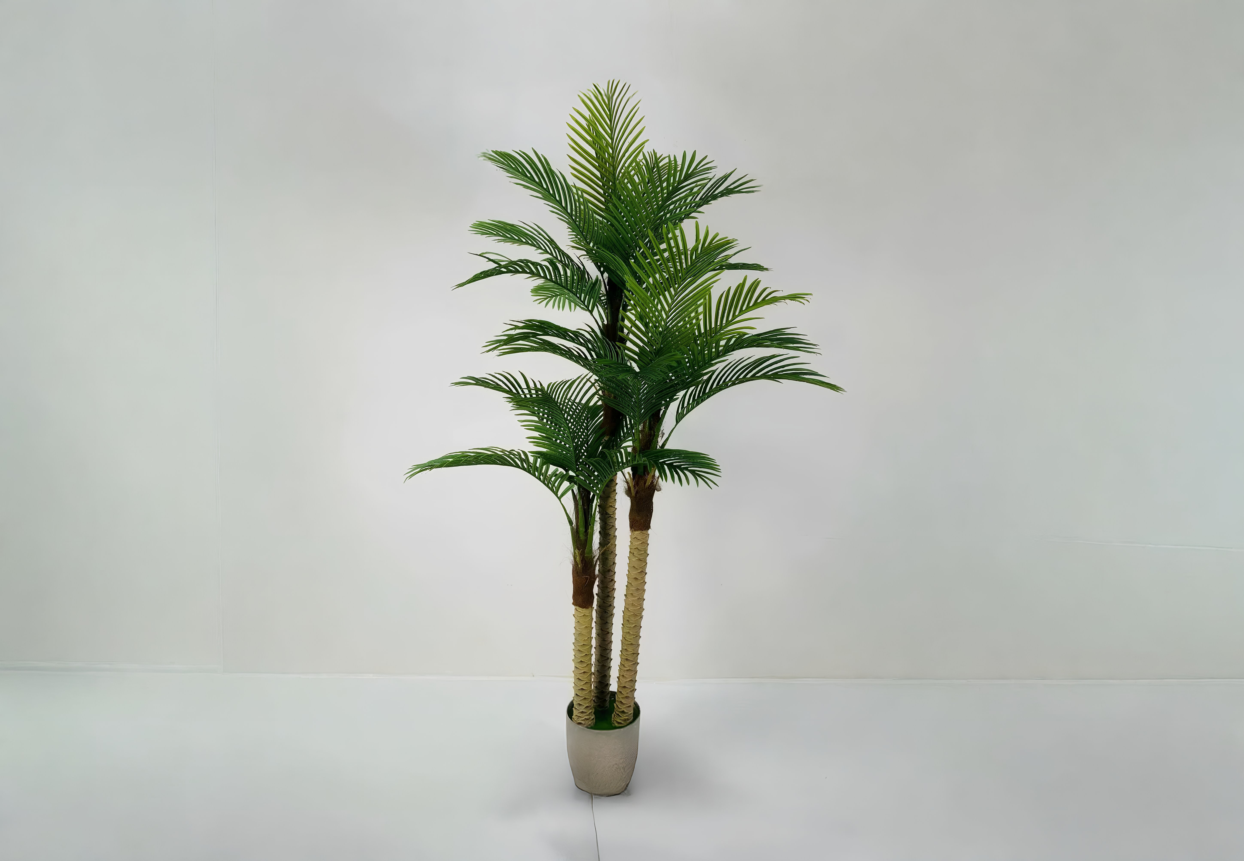 A realistic palm tree with multiple trunks, perfect for tropical-themed indoor or outdoor spaces.